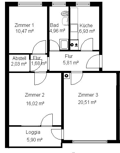 Gut geschnittene 3-Zimmer-Wohnung mit Loggia.